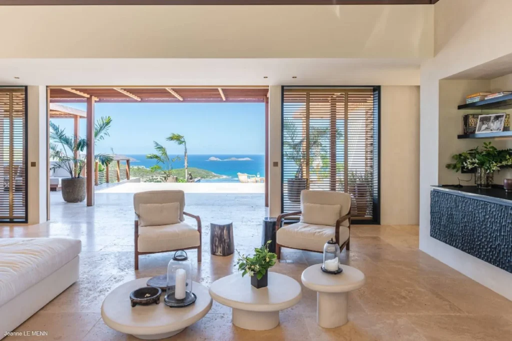 Located just minutes from Gustavia, St. Jean, and Gouverneur Beach, the villa offers a prime, private setting. Elevated above the terrain, it showcases panoramic views of St. Jean Bay and sunsets over the hills. The occasional passing of small planes adds island charm without disrupting the tranquility.