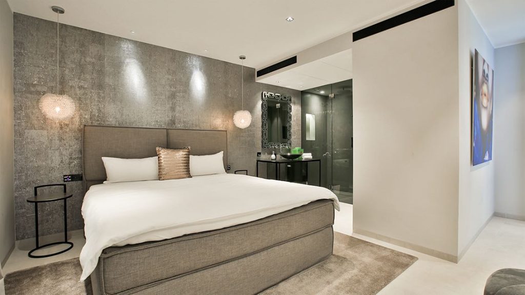 The sophisticated furniture has been carefully sourced from renowned brands like B&B Italia, Tribu, Minotti, Roche Bobois.