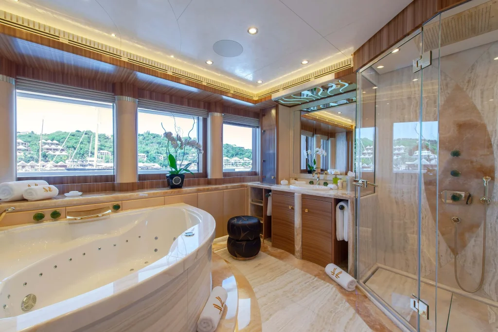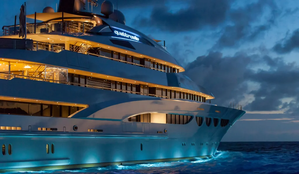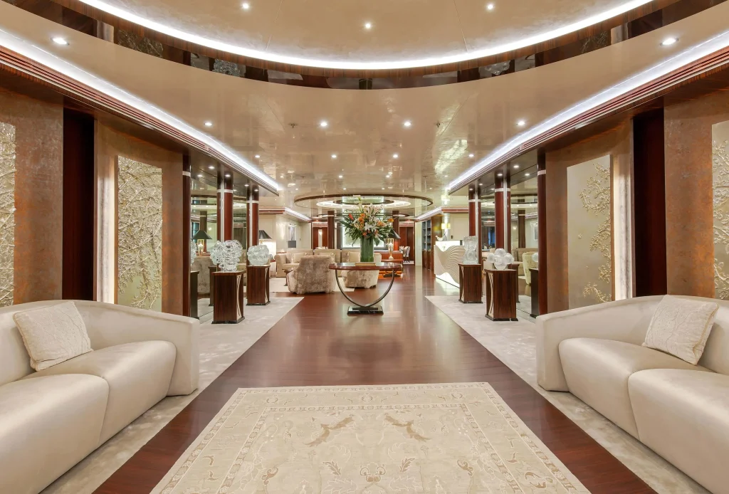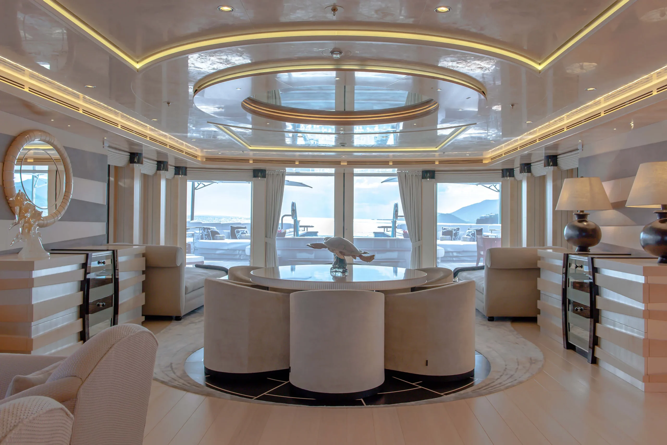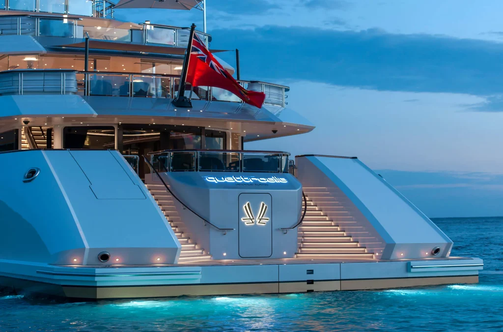 Quattroelle is built with a steel hull and aluminium superstructure, with teak decks. Powered by twin diesel Caterpillar (3516B -HD DITA SCAC Series II) 2,682hp engines running at 1600rpm, she comfortably cruises at 12 knots, reaches a maximum speed of 17 knots with a range of up to 6,000 nautical miles from her 229,000 litre fuel tanks at 12 knots. Quattroelle features at-anchor stabilizers providing exceptional comfort levels. Her water tanks store around 40,600 Litres of fresh water. She was built to Lloyds Register ✠+100A1, SSC Yacht Mono, LMC G6, UMS classification society rules, and is MCA LY2 Compliant.